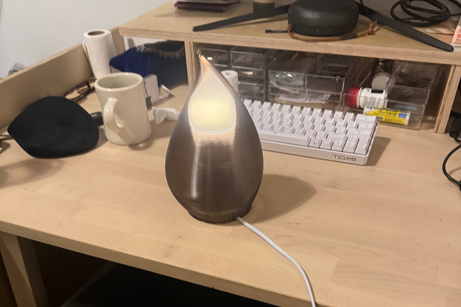 Each lamp is 3D printed using recycled PLA—a durable, plant-based material made from post-industrial waste. It’s lightweight, sustainable, and designed to last.